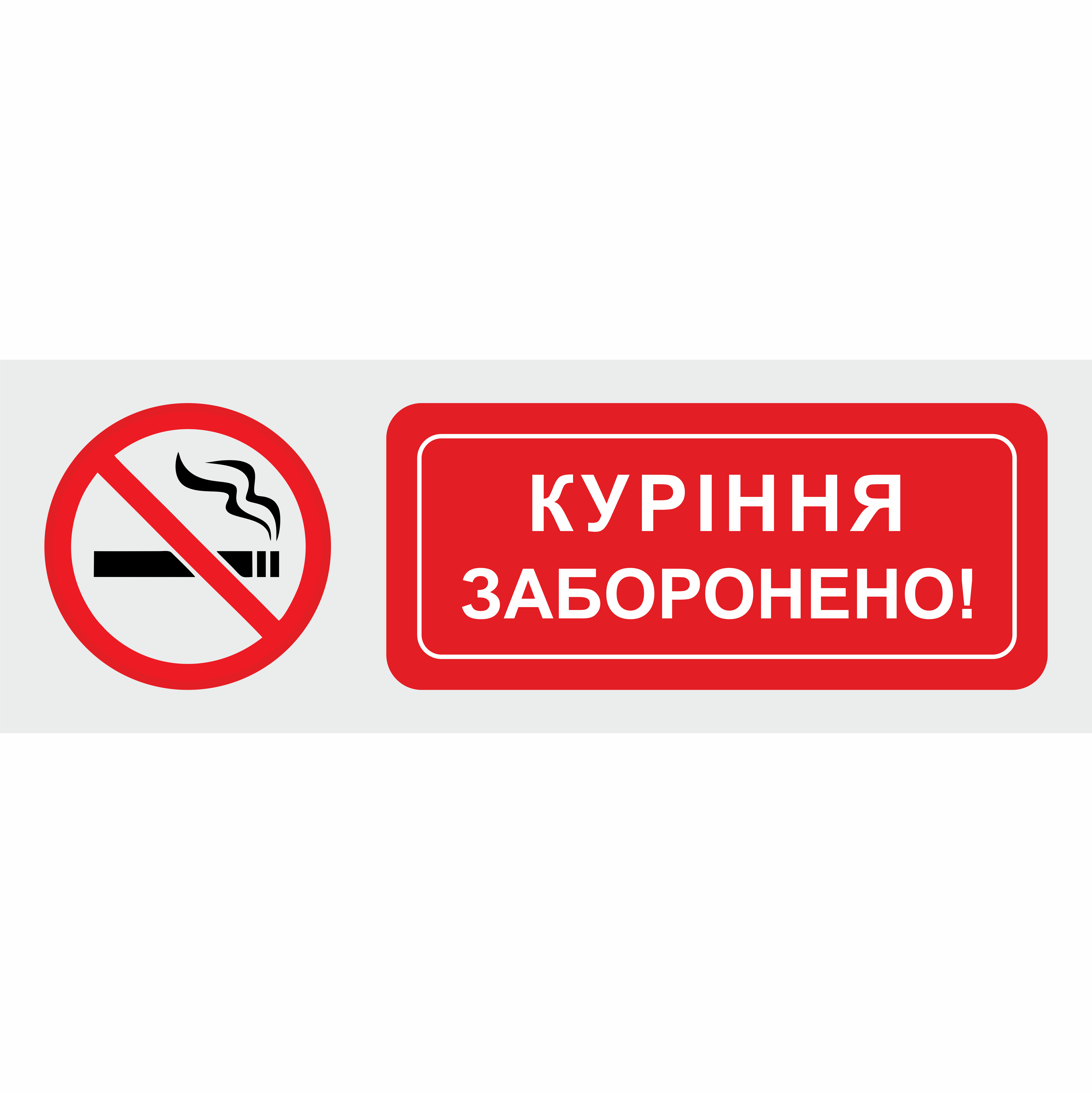 У місцях та закладах де куріння заборонено, має бути розміщена наочна інформація, яка складається із графічного знака про заборону куріння та тексту такого змісту: «Куріння заборонено!»