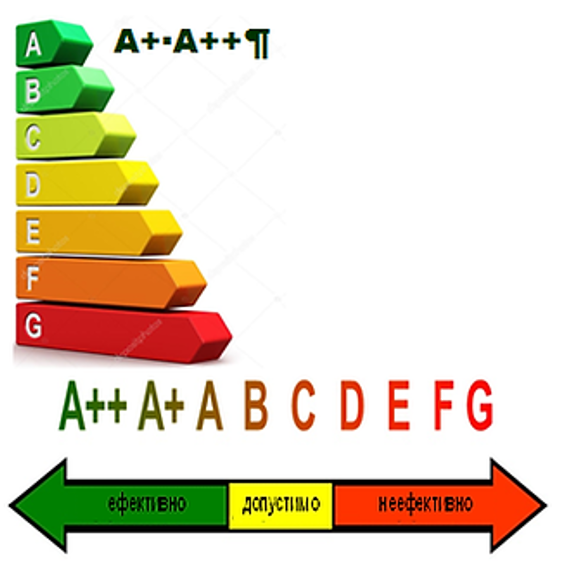 • клас енергоефективності: кольоровий код, пов’язаний із класами, який дає уявлення про енергоспоживання приладу;