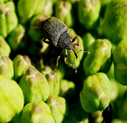 Звертаємо вашу увагу, що погодні умови сприяли виходу із місць зимівлі та заселенню посівів ріпаку стебловим та насіннєвим прихованохоботниками на 19% обстежених площ з заселенням 3% рослин та чисельністю 1 екз. на рослину, ріпаковим квіткоїдом на 100% обстежених площ з чисельністю 2-4 екз. на рослину. В умовах підвищення температурного режиму спостерігатиметься різка активізація зазначених шкідників.