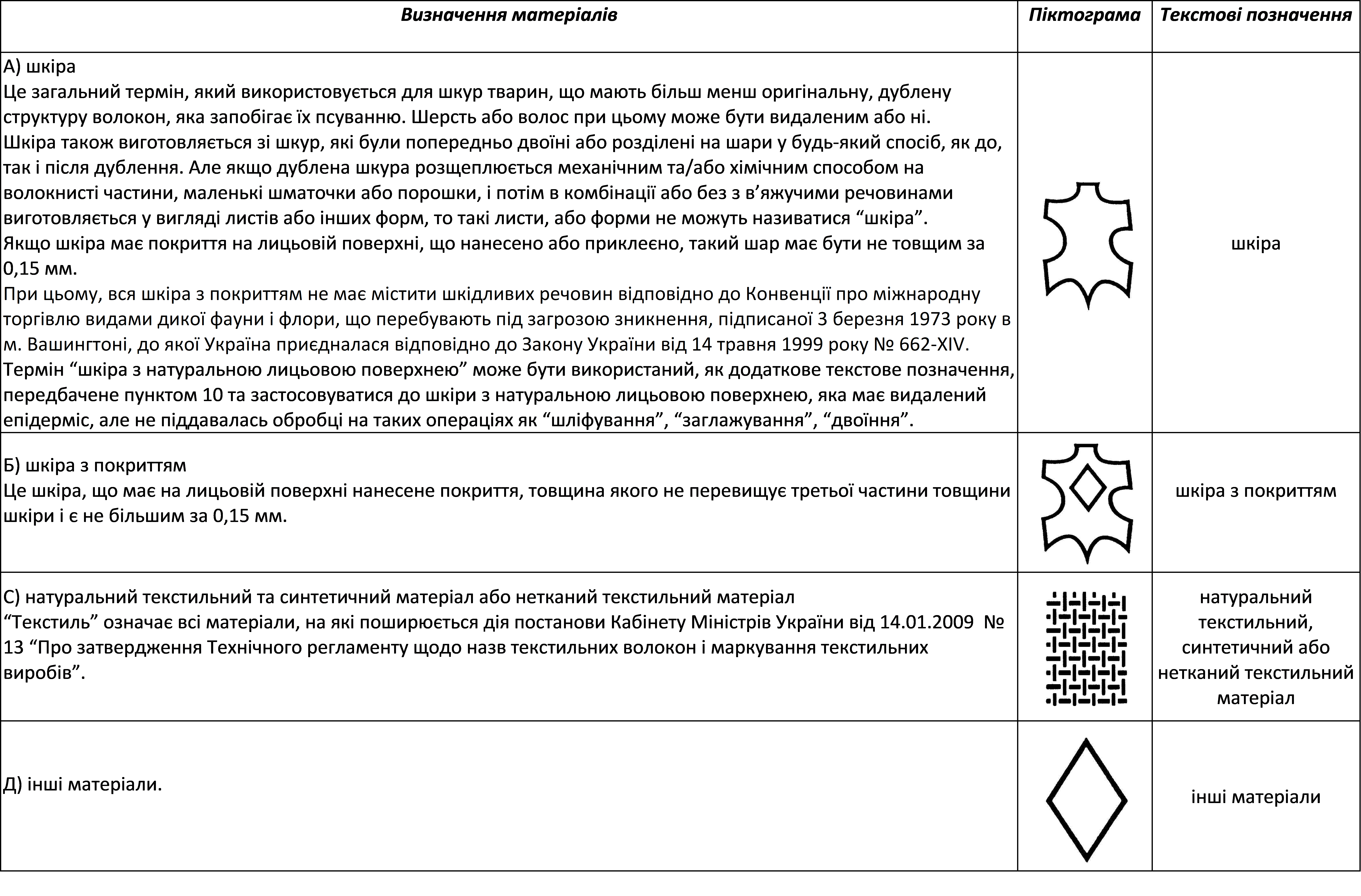 Визначення матеріалів та відповідні піктограми