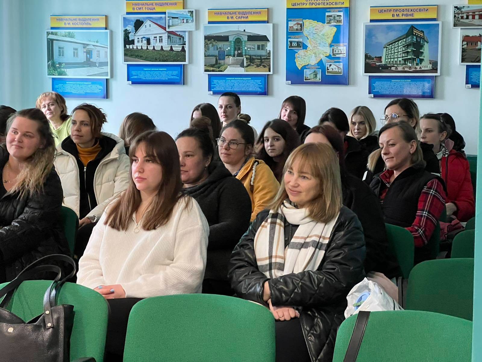 22 лютого 2024 року працівники управління захисту прав споживачів та контролю за регульованими цінами Головного управління Держпродспоживслужби в Рівненській області провели навчання для слухачів які проходять професійну підготовку,перепідготовку,підвищення кваліфікації в Рівненському центрі професійно-технічної освіти державної служби зайнятості на тему: «Реалізація норм законодавства про захист прав споживачів у своїй майбутній професії».