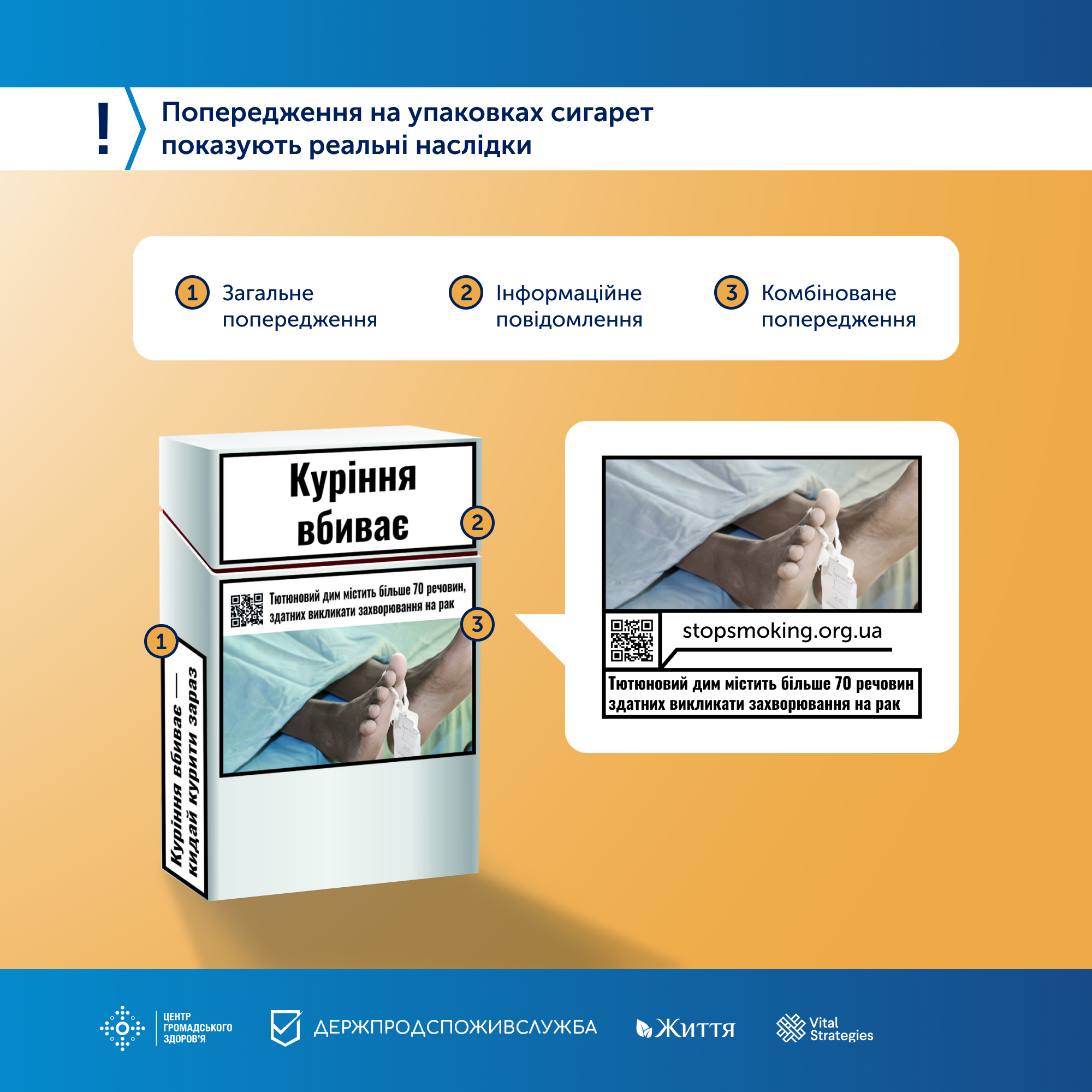 ✍️Такі попередження розроблені Міністерством охорони здоров’я відповідно до вимог Рамкової конвенції ВООЗ з боротьби проти тютюну. Вони засновані на висновках і рекомендаціях незалежних досліджень в Україні та країнах, де вони довели свою ефективність.