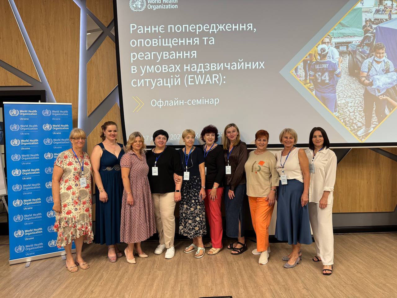 Представники Головних управлінь із західних областей країни разом із представниками регіональних Центрів контролю та профілактики хвороб взяли участь у національному тренінгу з раннього виявлення, попередження та реагування (EWAR) в умовах надзвичайних ситуацій, який відбувся у Києві з 14 по 17 липня 2025 року. Використання принципів системи EWAR, яка діє в усіх країнах-членах ВООЗ, забезпечує швидке виявлення потенційних спалахів, дозволяє оперативно локалізувати інфекції та запобігти поширенню, сприяє мінімізації наслідків для здоров’я населення під час надзвичайних ситуацій, посилює готовність регіонів до біологічних загроз