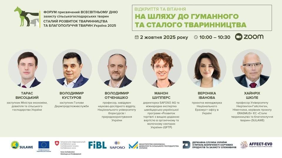 Нагадуємо! Вже завтра, 2 жовтня, розпочнеться онлайн-форум «Сталий розвиток тваринництва та благополуччя тварин – Україна 2025» з нагоди відзначення Всесвітнього дня сільськогосподарських тварин.