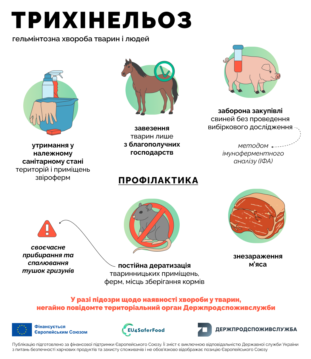 Детальніше про профілактику трихінельозу – в інфографіці, розробленій спільно з європейським проєктом EU4SaferFood..