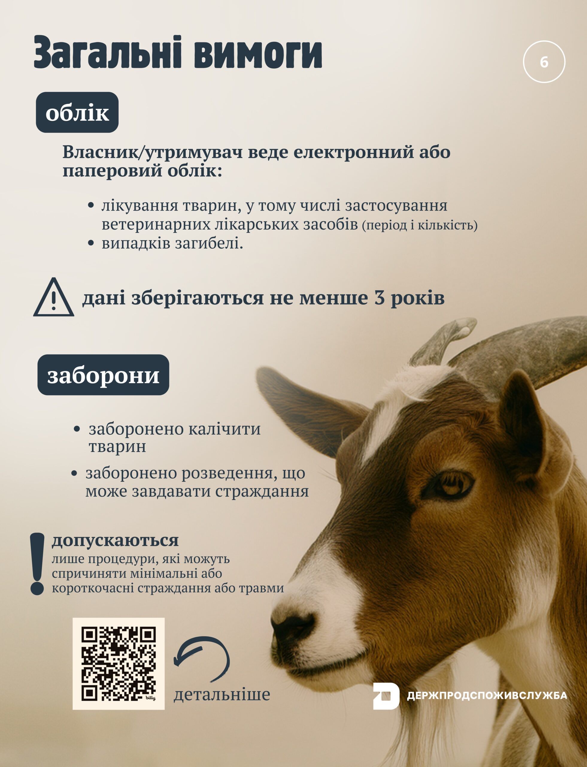 Вже з 1 січня 2026 року відповідно до наказу Міністерства розвитку економіки, торгівлі та сільського господарства України від 08.02.2021 № 224 будуть введенні в дію вимоги до благополуччя сільськогосподарських тварин під час утримання і будуть обов’язковими до виконання всіма операторами ринку. В свою чергу вимоги щодо благополуччя тварин під час умертвіння та транспортування почнуть діяти з березня 2026 року.