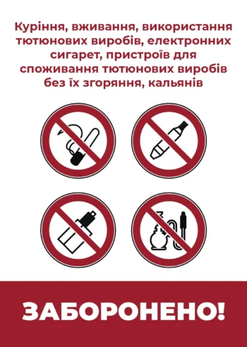 Також законодавством визначено обовʼязкове розміщення наочної інформації, що складається з графічного знака про заборону куріння і тексту у визначених громадських місцях, до яких входять приміщення закладів освіти незалежно від форми власності.